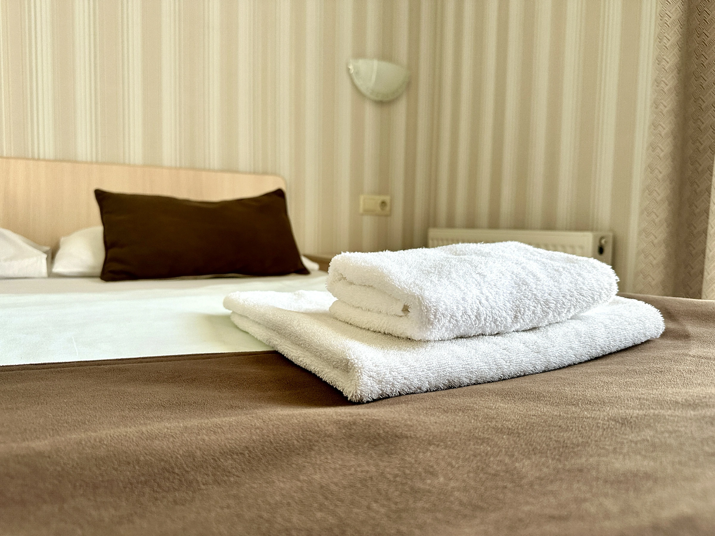 Все номера оформлены в современном стиле и уютно меблированы, оснащены сплит-системой, мини холодильником, шкафом, телевизором с плоским экраном.